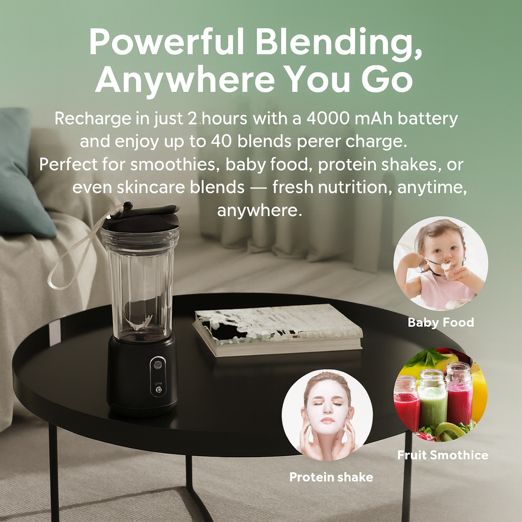 Perfect for smoothies, baby food, shakes, and more—up to 40 cups on a single charge.